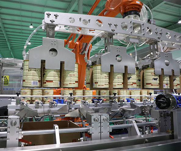 機(jī)器人裝箱機(jī)采用機(jī)器人裝箱,通過更換夾具,使其適合不同包裝物的裝箱需求,極大的提高了設(shè)備的靈活性、穩(wěn)定性和可靠性。