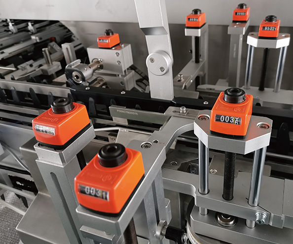 18組連續(xù)式推桿裝盒系統(tǒng),采用預壓力導軌,保證運行的同步精度和高速的穩(wěn)定性。